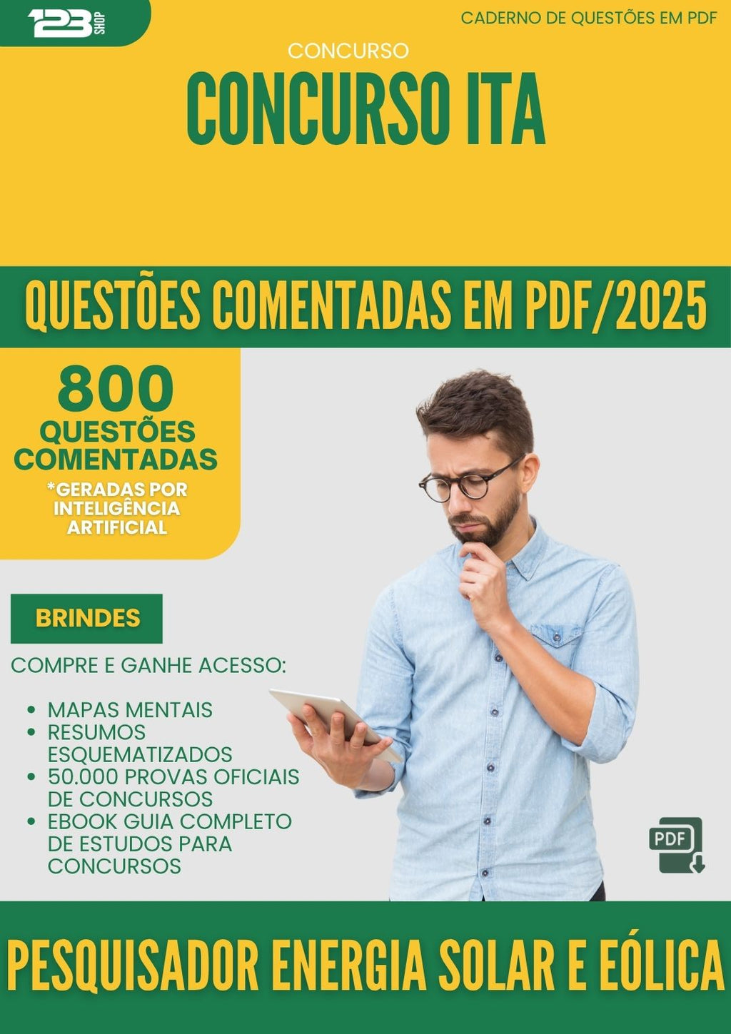 1000 Questões Comentadas para Concurso Pesquisador Energia Solar E Eolica da Prefeitura Ita 2025 - 800 Questões