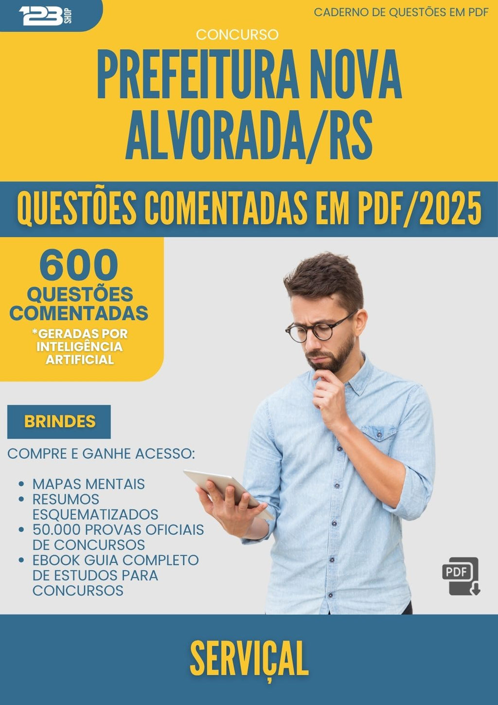 1000 Questões Comentadas para Concurso Servical Nova da Prefeitura Alvorada Rs 2025 - 600 Questões