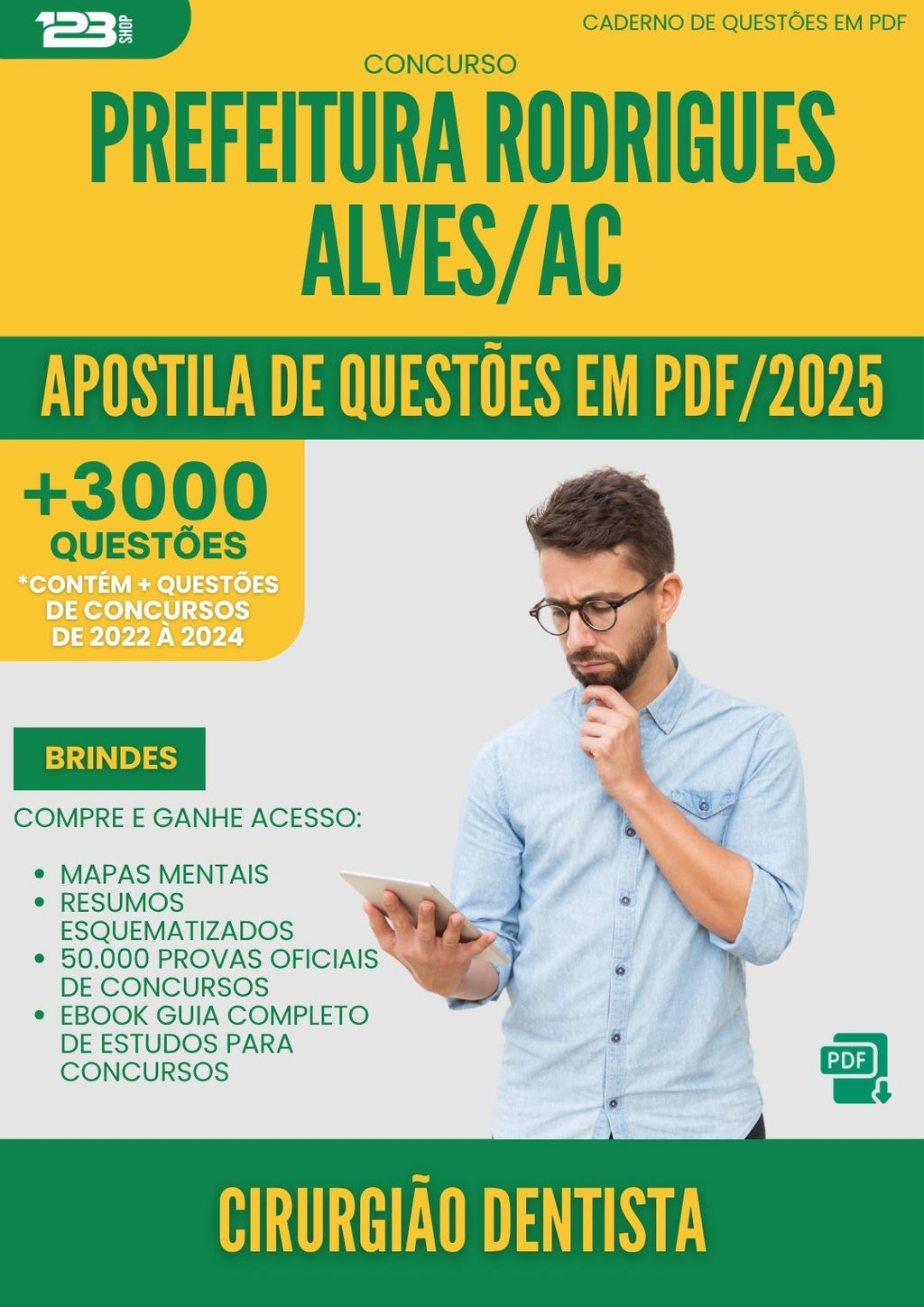 Apostila de Questões para Concurso Cirurgiao Dentista da Prefeitura Rodrigues Alves Ac 2025 - Mais de 3.000 Questões