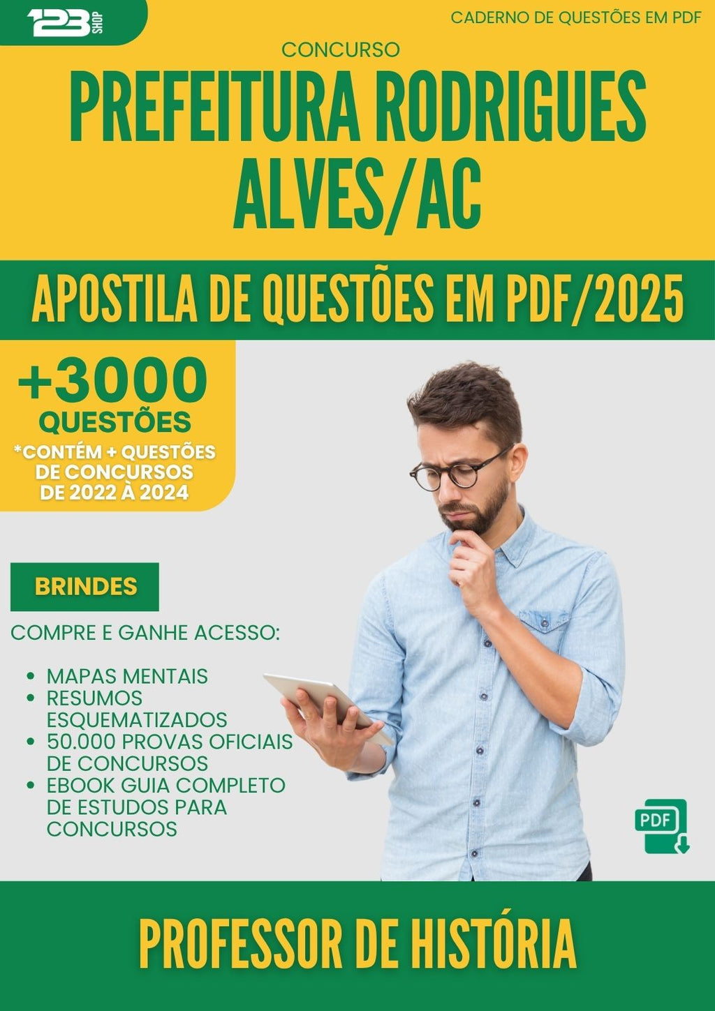 Apostila de Questões para Concurso Professor De Historia da Prefeitura Rodrigues Alves Ac 2025 - Mais de 3.000 Questões