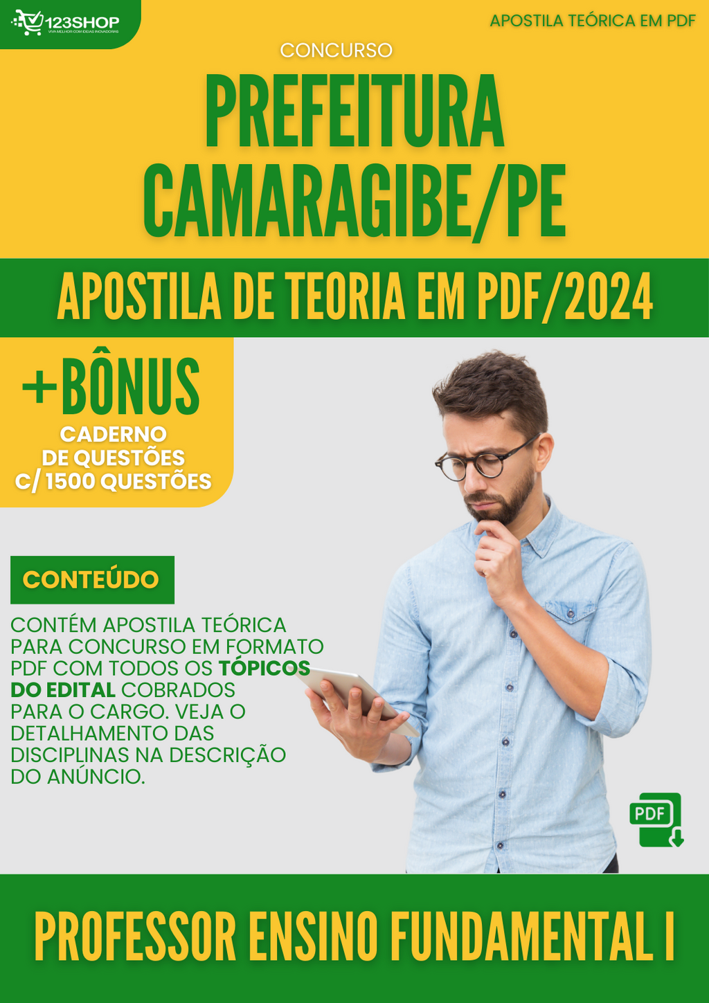 Apostila Teórica para Concurso Prefeitura Camaragibe PE 2024 Professor Ensino Fundamental I - Com Caderno de QuestõesConhecimento Básico
