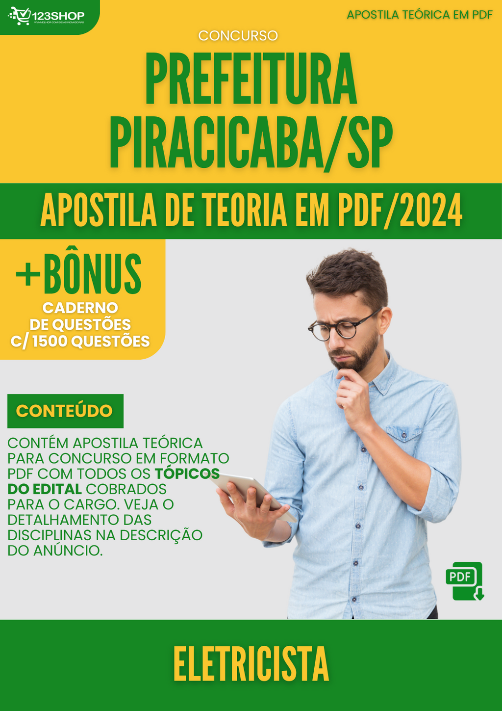 Apostila Teórica para Concurso Prefeitura Piracicaba SP 2024 Eletricista - Com Caderno de QuestõesConhecimento Básico
