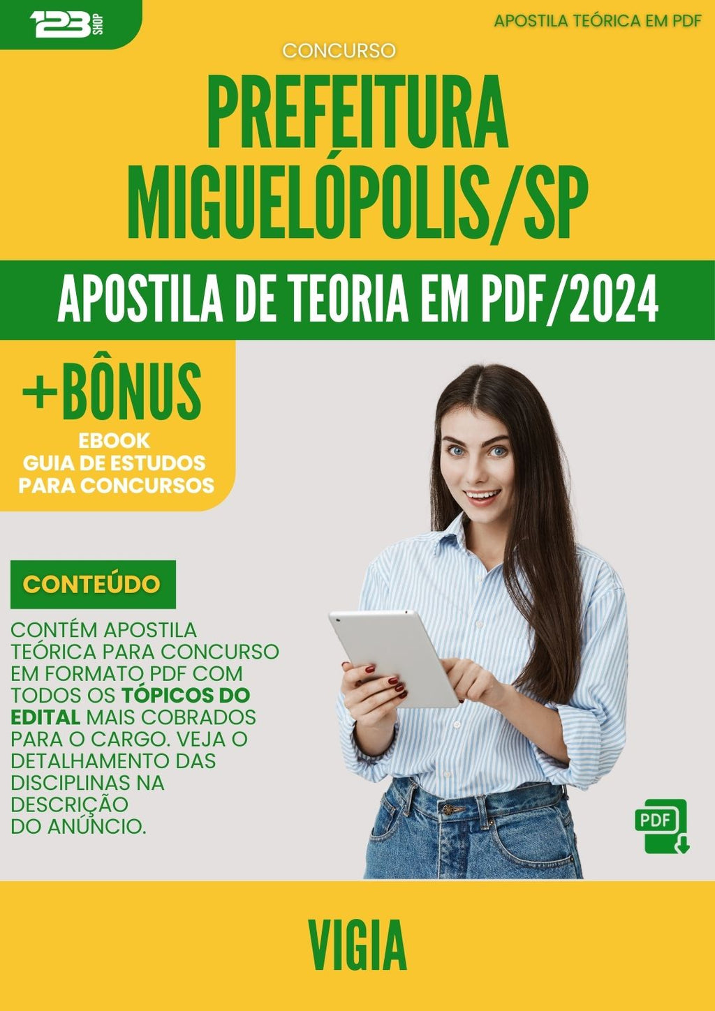Apostila Teórica para Concurso Vigia da Prefeitura Miguelopolis Sp 2024 - Conteúdo de Acordo com Edital