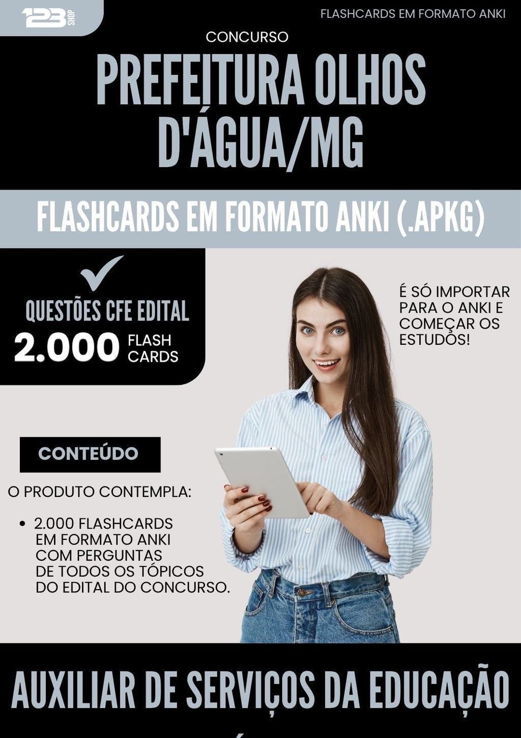 Flashcards para Concurso Auxiliar De Servicos Da Educacao Basica Olhos Dagua Mg 2025 - 2000 Flashcards de Acordo com Edital